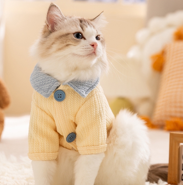 Cat clothes, color blocked base shirt, spring thin cardigan, blue cat, kitten, hairless cat, pet clothes